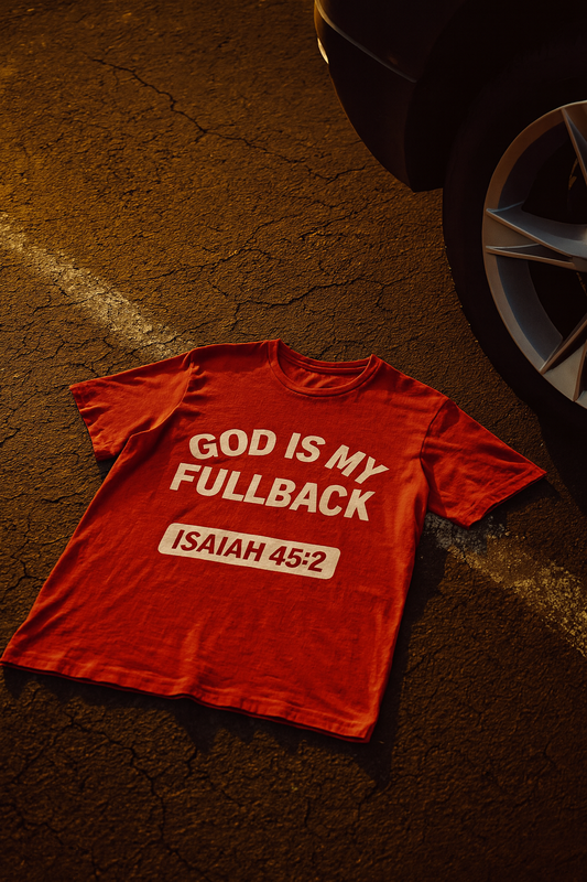 God is My Fullback Upgraded Premium Tee - Crimson - White
