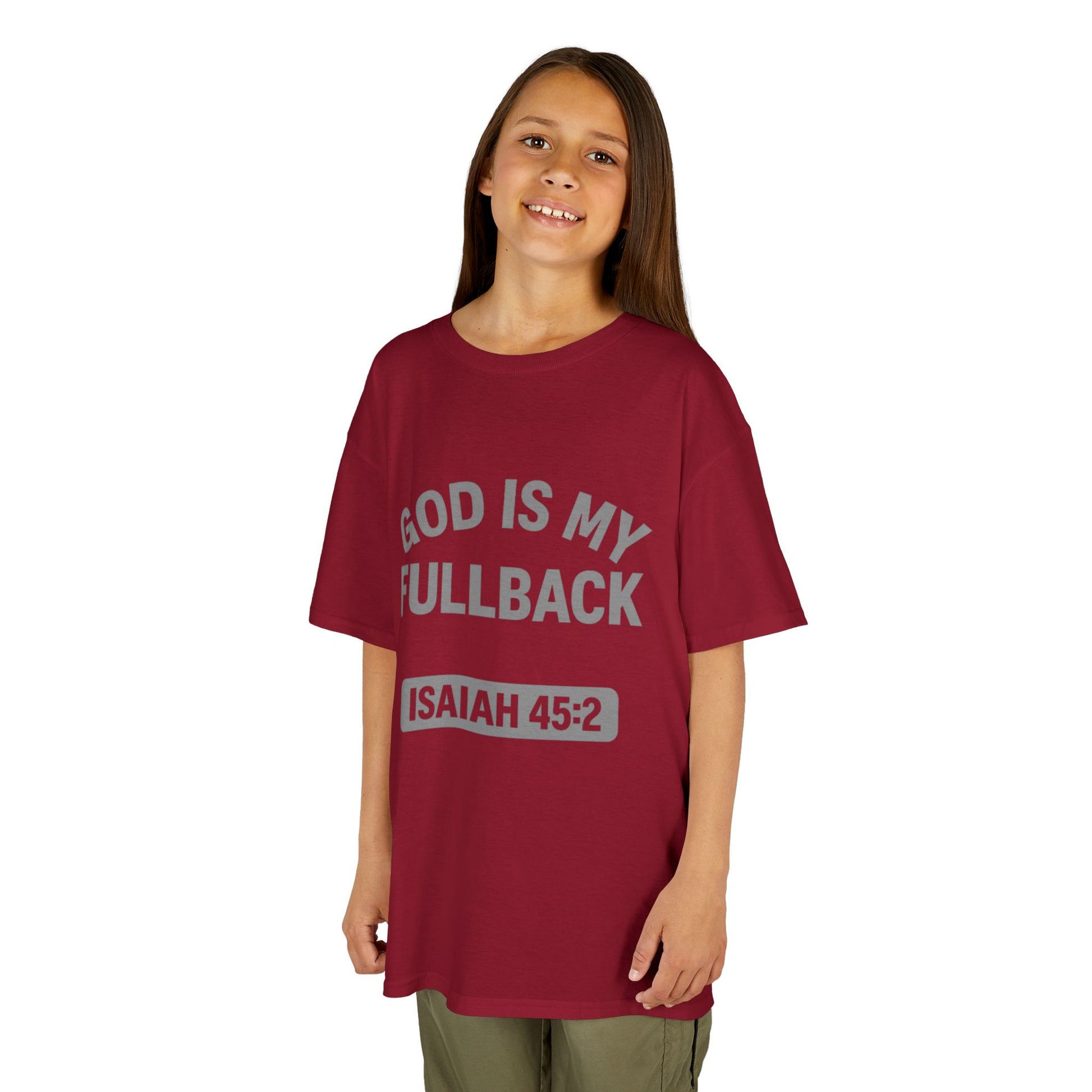 God is My Fullback Tee - Crimson-Grey - Kid's Size