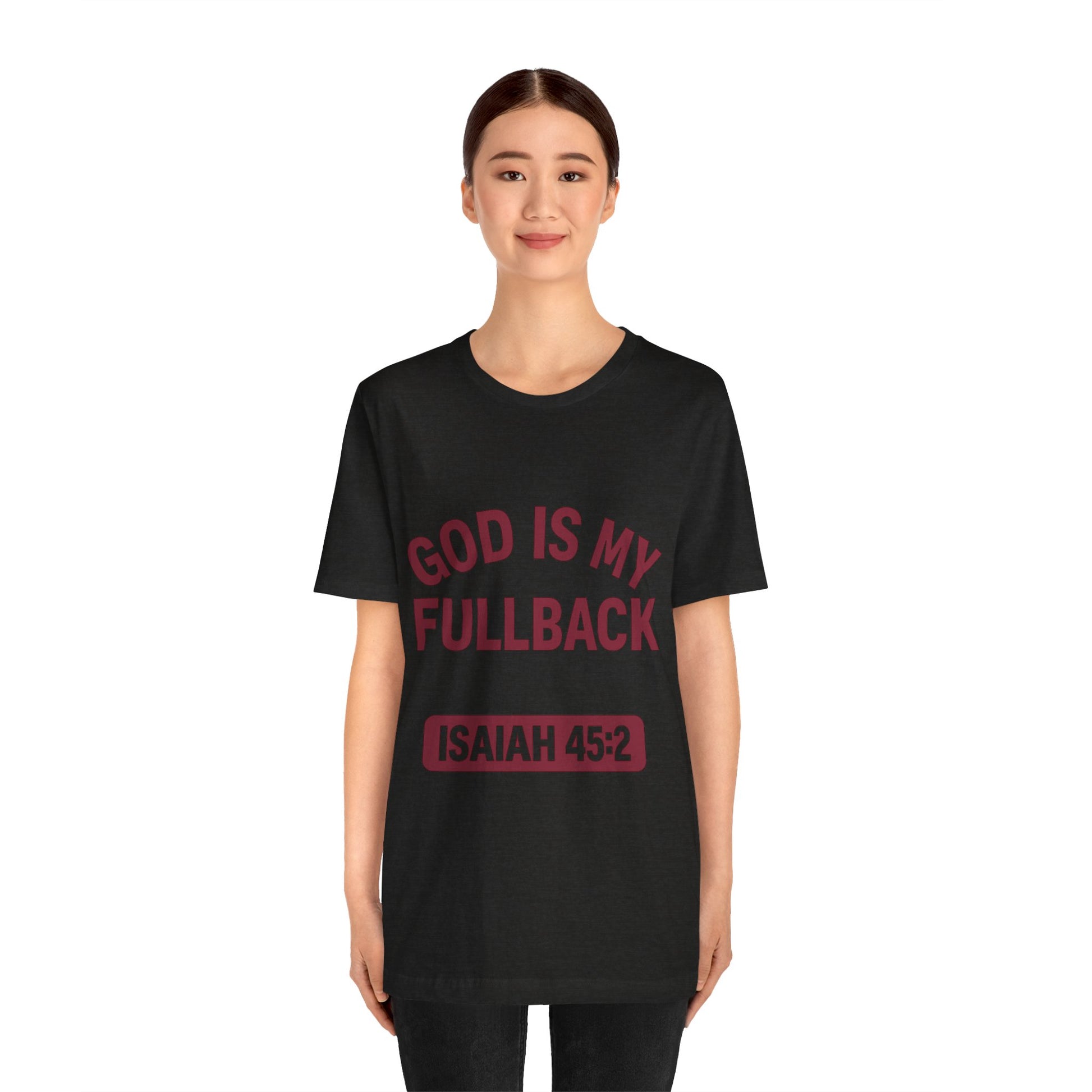 God is My Fullback Upgraded Premium Tee - Heather Black - Dark Red