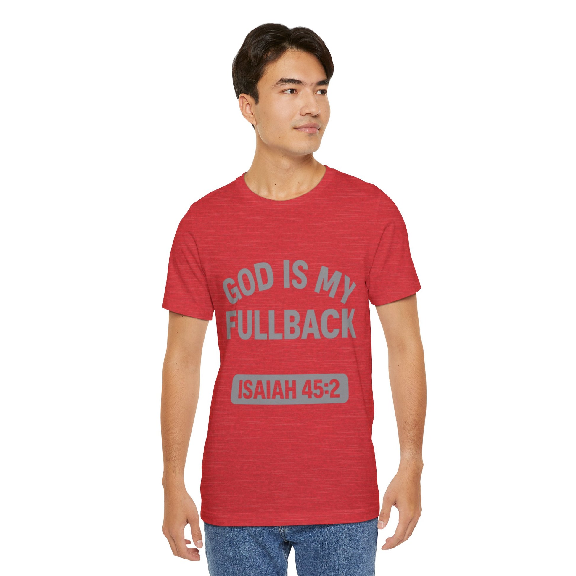 God is My Fullback Upgraded Premium Tee - Heather Red - Grey