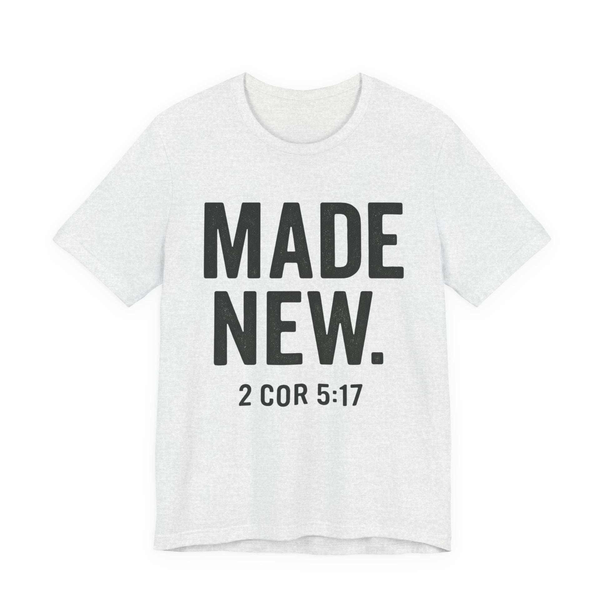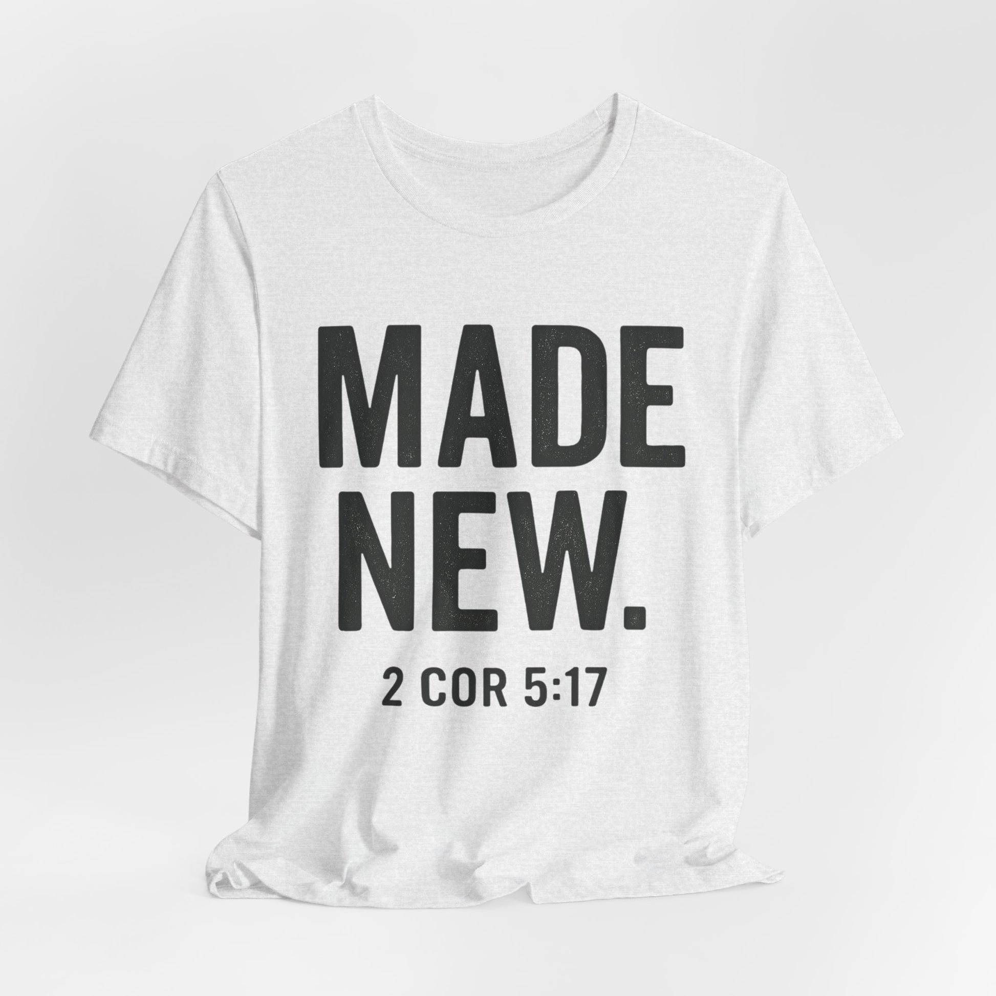 The Made New tee carries the promise of 2 Corinthians 5:17: