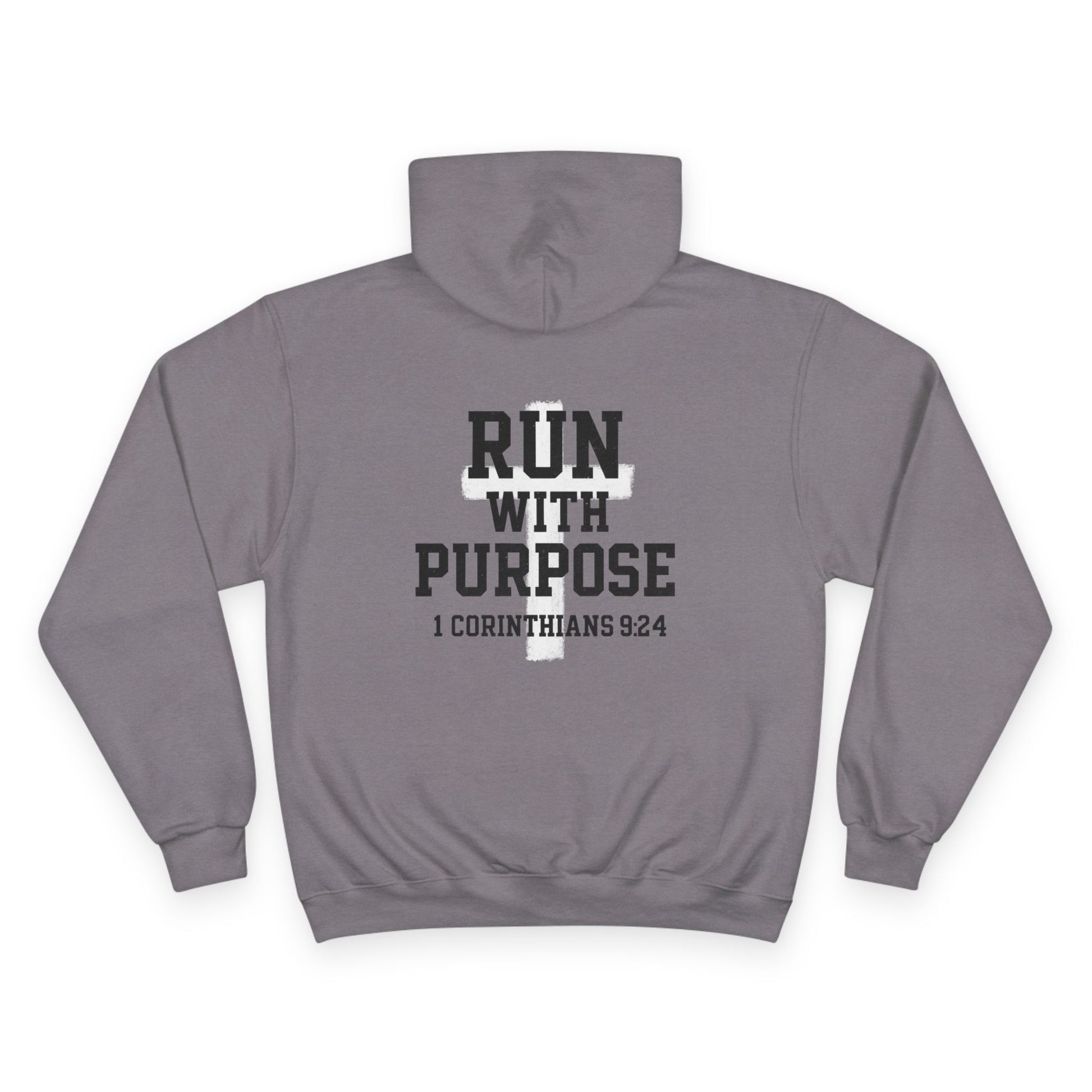 The Run With Purpose Champion® Hoodie takes its inspiration from 1 Corinthians 9:24 and the God Is My Fullback (Isaiah 45:2) message — a visual “playbook for life.” The front reminds us that God clears the path before us, while the back drives home the call to run your race with faith and focus.