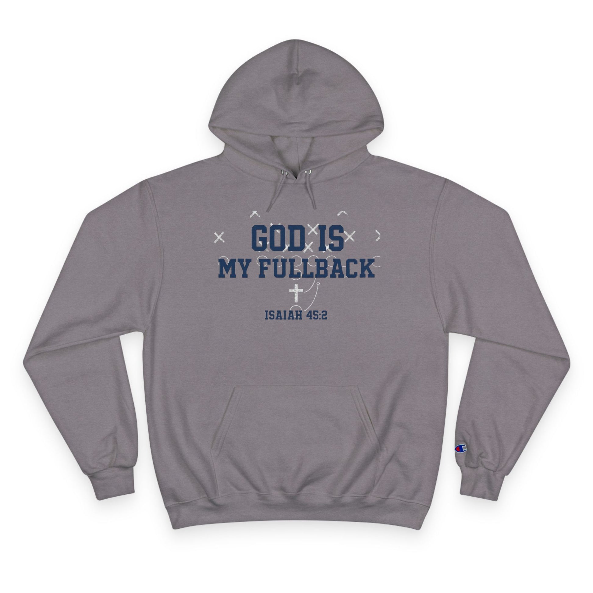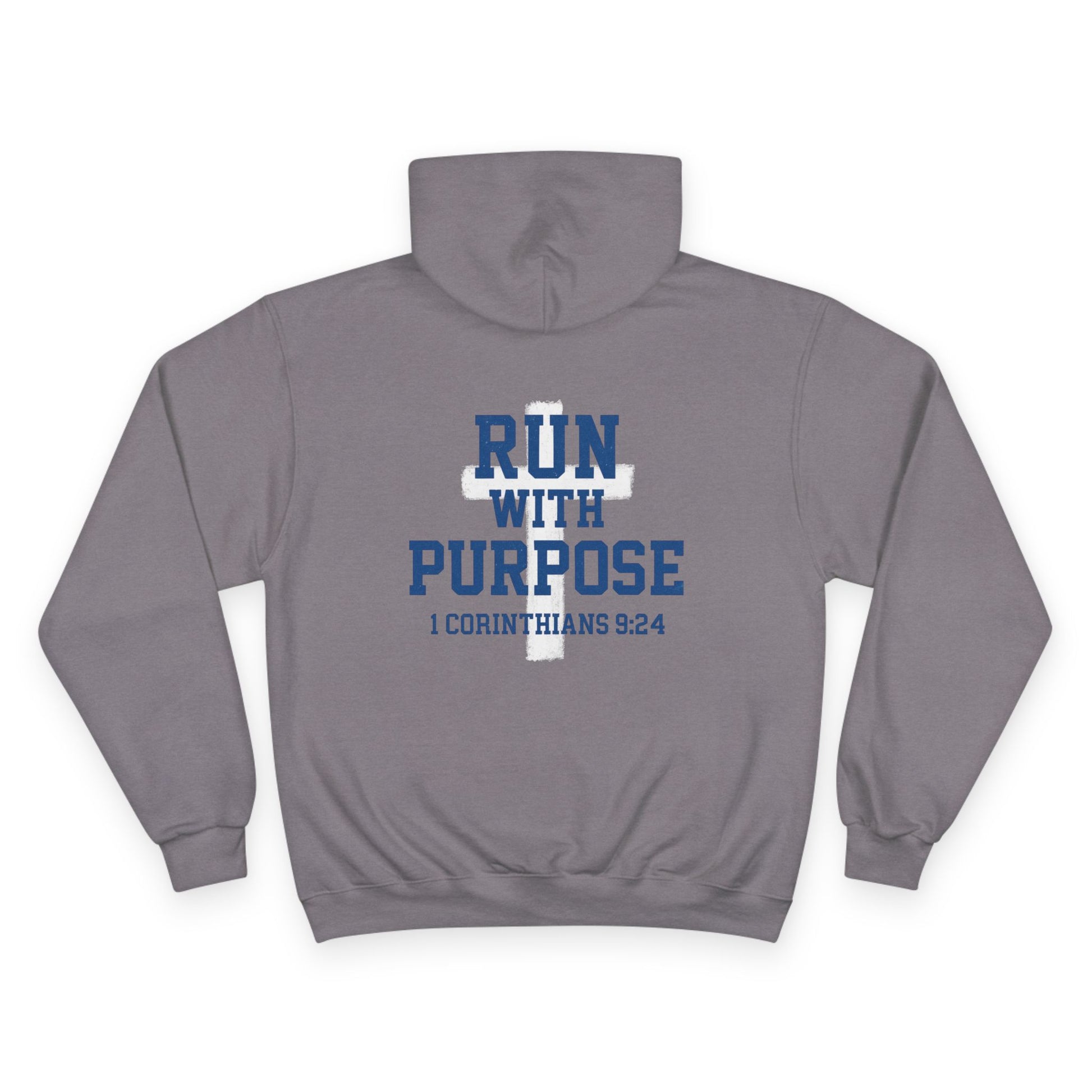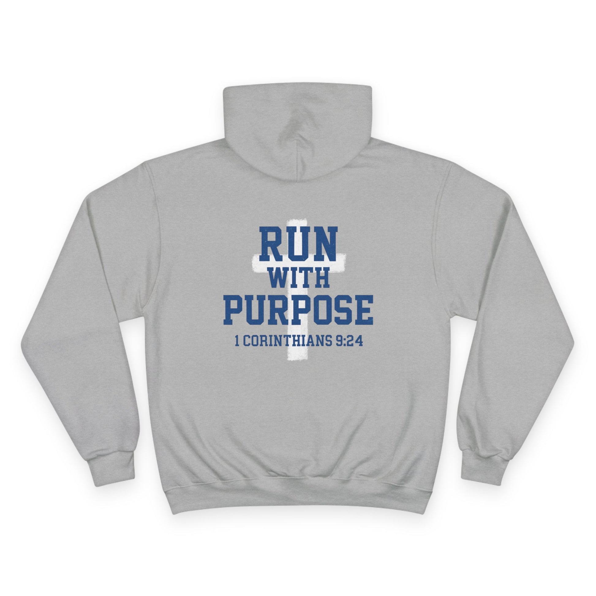 The Run With Purpose Champion® Hoodie takes its inspiration from 1 Corinthians 9:24 and the God Is My Fullback (Isaiah 45:2) message — a visual “playbook for life.” The front reminds us that God clears the path before us, while the back drives home the call to run your race with faith and focus.