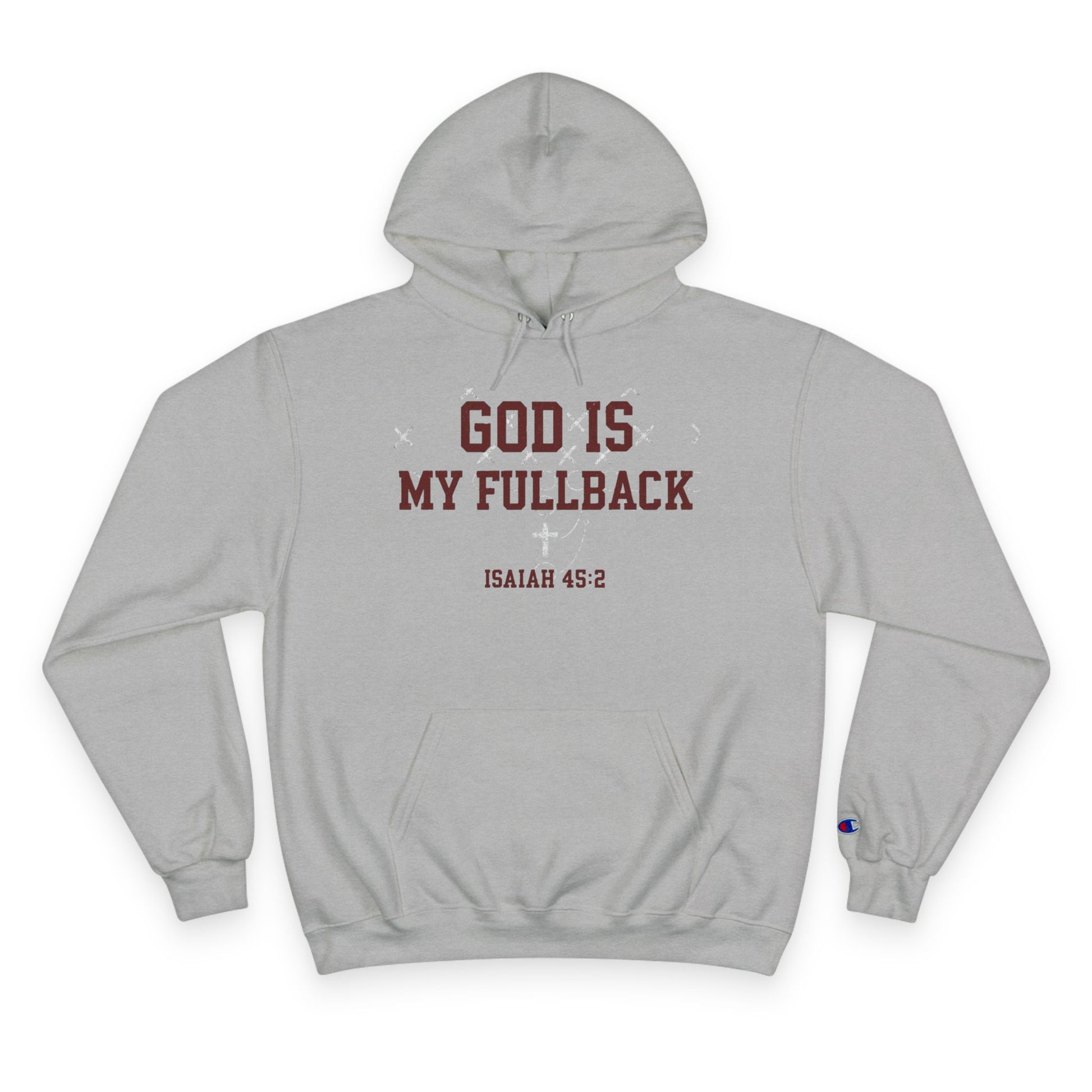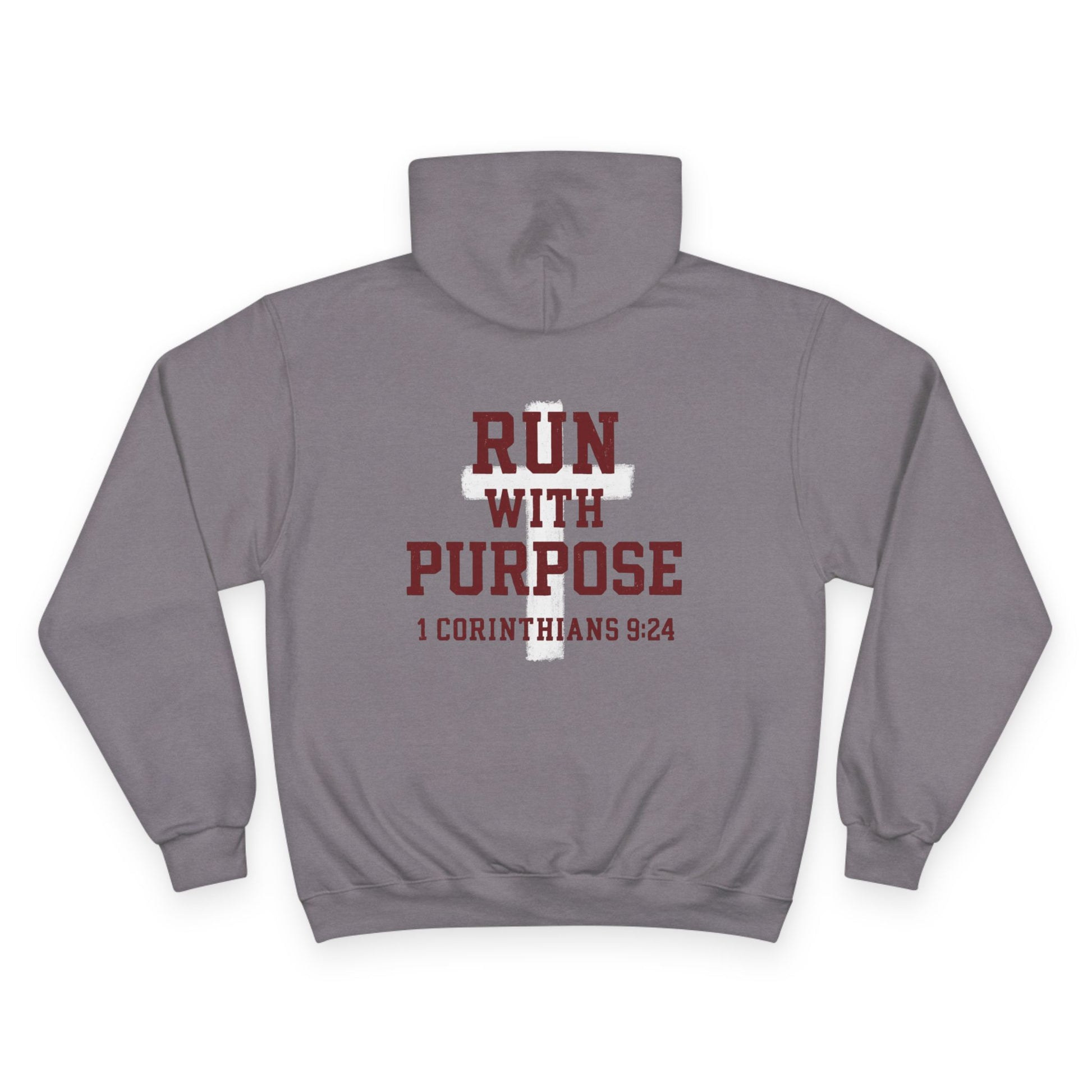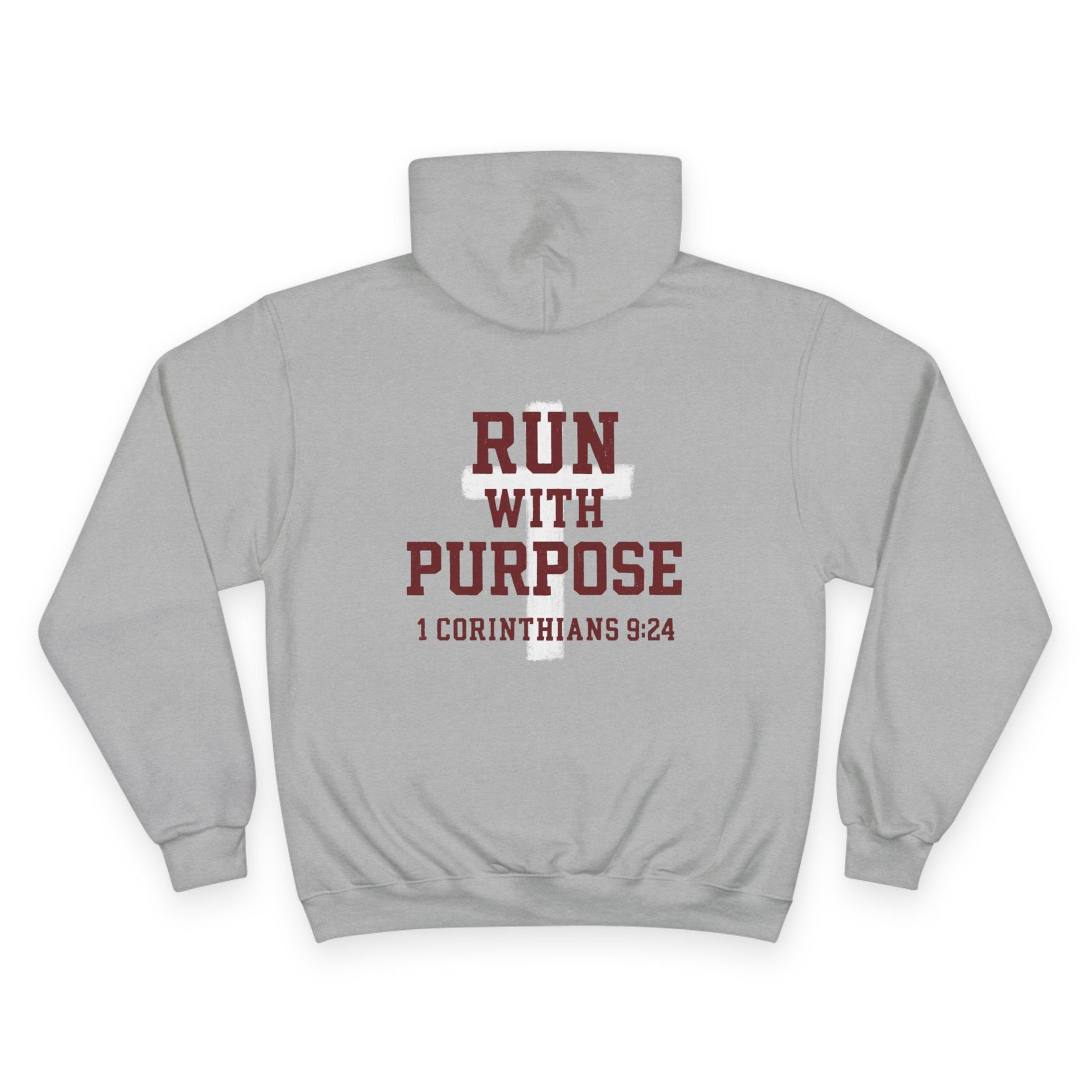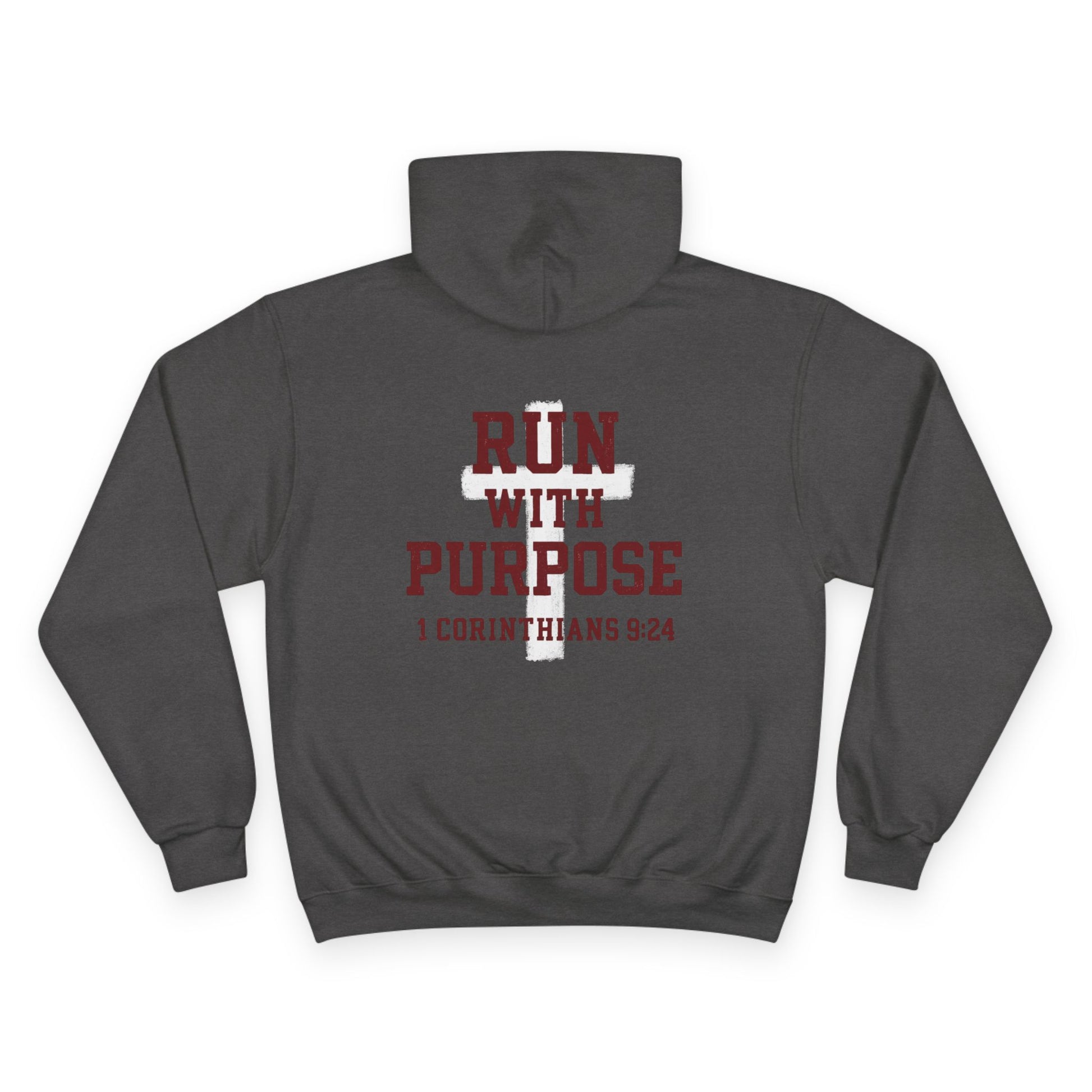 The Run With Purpose Champion® Hoodie takes its inspiration from 1 Corinthians 9:24 and the God Is My Fullback (Isaiah 45:2) message — a visual “playbook for life.” The front reminds us that God clears the path before us, while the back drives home the call to run your race with faith and focus.