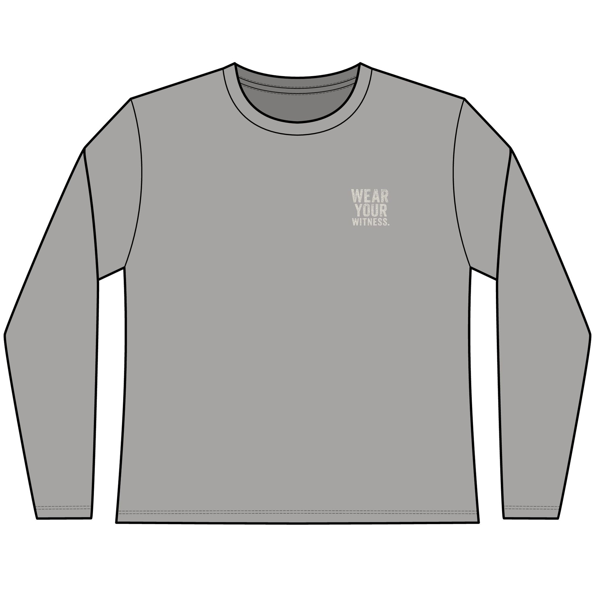 The distressed type treatment pairs perfectly with the rest of the Wear Your Witness collection — vintage, confident, and intentionally designed to spark faith-forward conversations.